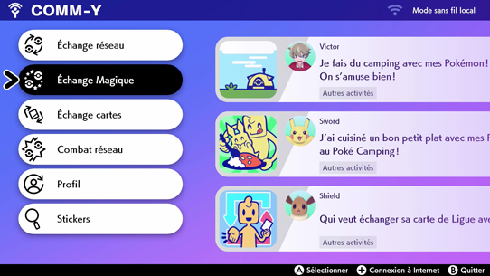 Échange cartes : permet d'échanger sa carte de Ligue avec d'autres joueurs.