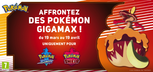 Ceux qui se sont connectés (ou inscrits) sur le site officiel de Micromania en France et d'autres enseignes dans les divers pays participants ont pu obtenir un bonus exclusif sous la forme d'un code (un par jeu, distribués du 19 mars au 19 avril 2021 puis valides jusqu'au 31 juillet 2021) qui permettait aux joueurs d'obtenir le Cristal Géant appelé ★Sgr6913. En l'utilisant dans la Tour en ruines des Terres Sauvages, il était possible d'affronter et d'attraper Pomdrapi Gigamax (Épée) ou Dratatin Gigamax (Bouclier) lors de raids Dynamax spéciaux. Voici leurs caractéristiques (leur nature était bien évidemment aléatoire) :