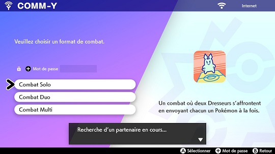 Saisissez un mot de passe en appuyant sur + pour être sûr de trouver la bonne personne pour le combat.