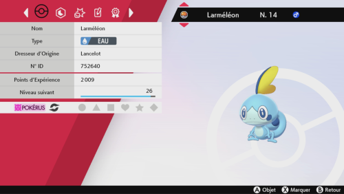 visage rose dans son résumé.Lorsqu'un Pokémon en phase active est placé dans le PC, le temps de guérison est gelé. Il est donc conseillé d'avoir toujours un Pokémon en phase active dans votre PC pour infecter les nouveaux membres de votre équipe.
