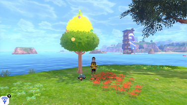 Dans le Pass d'extension de Pokémon Épée et Bouclier, vous pouvez aussi collecter des Baies dans les arbres à Baies. L'idée est de secouer ces arbres pour y faire tomber des Baies.