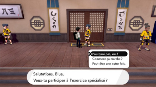 Une fois le scénario de l'île d'Isolarmure terminé, vous aurez accès à une nouvelle forme de combat : l'exercice spécialisé. En imposant des restrictions dans vos choix de Pokémon, il mettra vos talents de dresseur à rude épreuve ! Vous pouvez débuter un exercice spécialisé en parlant à la Disciple devant la porte au fond du Dojo Maîtrise.