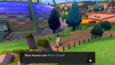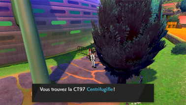 Mais avant vous pouvez aller faire soigner vos Pokémon et récupérer une Racinénergie cachée dans le chemin à l'est ainsi qu'une Pierre Stase, elle aussi cachée ! En vous dirigeant vers le stade, vous pouvez récupérer la CT97 Centrifugifle à l'est et un Rappel Max à l'ouest !