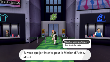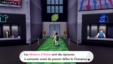 Parlez à l'assistante qui vous rappelle ce en quoi consiste ce défi ainsi que les Missions d'Arènes que vous aurez à surmonter dans chaque Stade !