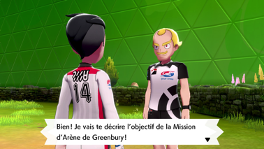 Une fois la cérémonie terminée, vous retrouvez Nabil, Shehroz et Tarak ! Shehroz se présente en personne et voit que vous avez déjà un Poignet Dynamax. Il vous rappelle que le Défi des Arènes est l'occasion idéale pour tester le Dynamax puis s'en va. Nabil vous indique alors que votre prochaine destination n'est autre que le premier champion d'arène se situant à Greenbury. Vous devez passer par la Route 3 pour y parvenir.