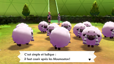 Pour passer la première barrière, amenez-les simplement à destination ! Pour la deuxième, un Voltoutou effraie les Moumouton alors contournez-le pour pouvoir tous les faire passer (ils rebrousseront chemin sinon), puis un dresseur vous attend :