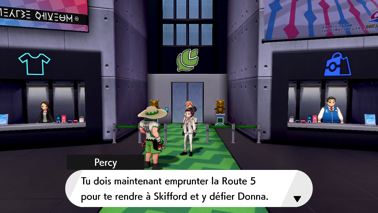Percy débarque et vous informe que vous devez maintenant vous rendre à Skifford pour y défier Donna, la championne d'arène mais que vous pouvez aussi repasser par les Terres Sauvages pour capturer des Pokémon plus puissants !