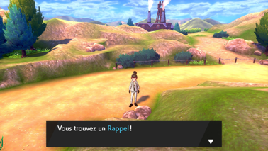 Il est l'heure pour vous de poursuivre votre route ! Récupérez un Rappel sur le rocher scintillant puis continuez tout en sautant le petit talus pour revenir sur vos pas et combattre un dresseur :