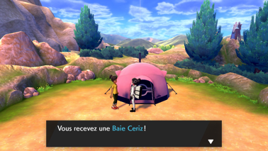 Continuez alors votre route, on vous offre alors une Baie Ceriz près du campement, puis vous tombez sur un dresseur :