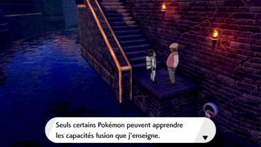 En descendant les marches, vous pouvez les marches parler à un homme qui enseigne les capacités fusion (les Aires). Impossible de traverser le pont, un autre membre de la Team Yell et son Linéon vous empêchent de passer ! Une fois votre tour de la ville fait, retournez donc voir Roy.