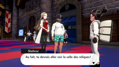 Vous arrivez ensuite au 2ème Centre Pokémon où vous pouvez récupérer 2 Attaque + cachés devant. Le bâtiment suivant renfermant la salle des reliques se trouve juste après, mais vous ne pouvez y accéder que si vous avez déjà eu l'autorisation de Shehroz. C'est le cas si vous l'avez suivi dans le stade, auquel cas vous verrez Roy qui vous attend devant, sinon un Employé du Défi des Arènes vous bloquera le passage. Finissons la visite de l'extérieur de la ville avant d'aller lui parler !