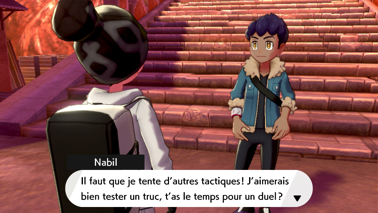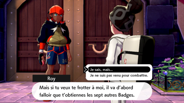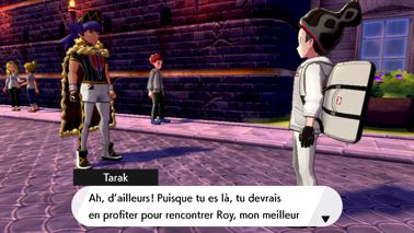 Ressortez pour retrouver Tarak près du Centre Pokémon, qui s'inquiète pour Nabil depuis sa défaite face à Travis. Il espère que vous pourrez lui remonter le moral et vous incite à rencontrer Roy, le champion de l'arène locale, dans la salle que le président vous a indiquée !