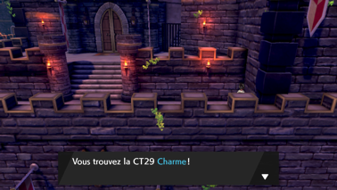 Montez ensuite à l'étage, récupérez la CT29 Charme, et pénétrez dans la salle afin de retrouver Sonya ! Elle vous montre les tapisseries retraçant l'histoire de la région, puis après une petite discussion, elle vous offre 2 Rappels !