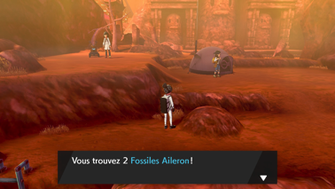 Montez encore à l'échelle puis récupérez la CT15 Tunnel au sol et récupérez 2 Fossiles Aileron (Épée) ou Poisson (Bouclier) cachés près du petit rocher sur votre gauche.