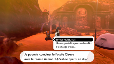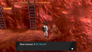 Vous pouvez aussi parler à Alba Minçalor qui étudie les fossiles et qui peut faire revivre des Pokémon de ces derniers si vous lui apportez deux moitiés qui peuvent se combiner entre elles ! En prenant l'échelle à l'extrême gauche, vous pouvez récupérer un Lumargile.