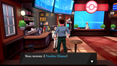 Dès votre arrivée, direction le Centre Pokémon pour faire soigner vos Pokémon ! On vous y offre également 2 Fossiles Oiseau (Épée) ou Dragon (Bouclier).