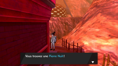 Ressortez puis récupérez la Pierre Nuit derrière. En continuant votre route, vous pouvez aussi faire des achats au Marché aux puces : l'homme de droite vous vend un objet unique contre de l'argent tandis que celui de gauche vous demande un objet unique contre de l'argent en échange et ce quotidiennement !