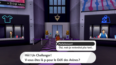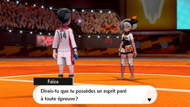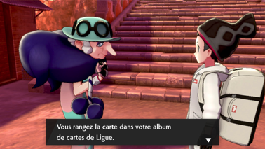 Vaincu et ayant cru vous avoir avec sa nouvelle composition d'équipe, il s'en va puis Sally vient vous voir à son tour et vous remet la carte de Ligue de Faïza (Épée) ou Alistair (Bouclier) et vous indique que le prochain défi dans le stade de la ville vous attend !