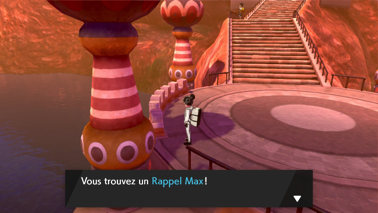 En haut, vous pouvez récupérer une Fraise en Sucre au sol et un Super Bonbon caché près de la porte derrière la statue en forme de Poké Ball. Parlez à la fillette nommée Paula qui vous demande d'apporter une lettre à un certain Basile dans la ville de Corrifey ! Récupérez ensuite des Lunettes Sages au sol.
