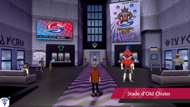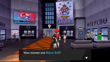 Il est maintenant l'heure de relever le défi du Stade ! À l'intérieur du hall, parlez à Ball Masqué pour qu'il vous offre une Masse Ball. Une boutique d'uniformes est également disponible.