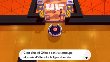 Guido vous explique que la Mission d'Arène de ce stade consiste à monter dans une soucoupe pour atteindre la ligne d'arrivée tout en évitant les obstacles !