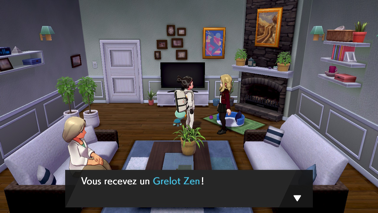 Ramassez une Pépite cachée près de la muraille et du bac à fleurs derrière le panneau de présentation de la ville. En entrant dans la maison juste à côté, parlez à l'enfant pour obtenir un Ruban Affection si vous vous avez tissé de puissants liens d'amitié avec l'un de vos Pokémon. La femme sur le canapé vous offre quant à elle un Ruban Effort si vous lui montrez un Pokémon dont vous avez maximisé les points de base (EV). Enfin, le troisième personnage vous remet un Grelot Zen !