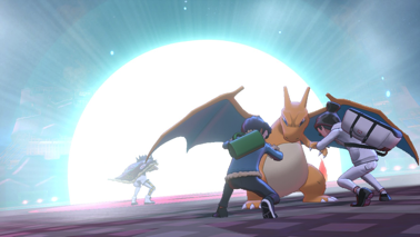 Une fois qu'il n'a plus de PV, il s'effondre un instant, puis une explosion d'énergie survient et il s'envole brusquement dans les cieux. Un nuage violacé apparaît, les objets autour de vous commencent à flotter dans les airs, et finalement le Pokémon réapparaît sous sa forme Infinimax. Vous devez de nouveau le vaincre, cette fois en duo avec Nabil !