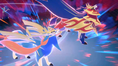 Pendant ce temps, deux rochers près du sanctuaire de la Forêt de Sleepwood se mettent à briller, et voilà que Zacian et Zamazenta sont réveillés ! Dans un sursaut de lumière, il s'envolent et se retrouvent peu après à vos côtés ! Les deux artefacts anciens réagissent à leur présence et Zacian absorbe l'Épée, tandis que Zamazenta s'empare du pouvoir du Bouclier, ce qui change leur apparence !