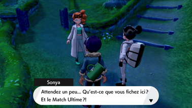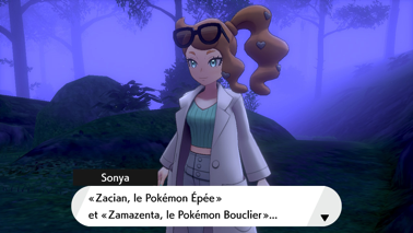C'est alors que Sonya vous rejoint et vous indique qu'elle a trouvé de nouvelles informations en cherchant dans des documents étrangers. Elle vous révèle le nom des deux Pokémon de la légende : Zacian pour le Pokémon Épée et Zamazenta pour le Pokémon Bouclier ! Ils seraient nés par delà la Forêt de Sleepwod mais y sommeilleraient depuis très longtemps, ce qui aurait vallu l'interdiction de pénétrer dans ce bois. Passez ensuite le pont et poursuivez vers le nord.