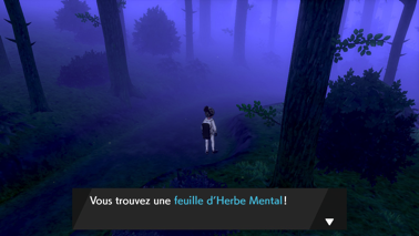 De retour à la deuxième intersection, partez maintenant à gauche pour récupérer une Graine Brume dans ce cul-de-sac. Repartez en arrière jusqu'au premier croisement et empruntez maintenant le chemin de gauche. Là aussi, deux voies sont encore possibles ! À droite, vous ne trouverez que des hautes herbes et les deux passages se rejoignent. Allez donc à gauche pour trouver une Herbe Mental.