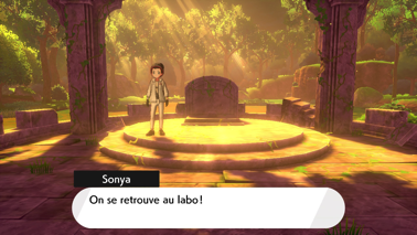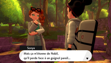 Puis, elle se demande ce que vous faites ici et, un peu mal à l'aise, Nabil "confirme" que vous êtes revenus mettre en place les artefacts précédemment ramassés en ce lieu, qui vous ont servis contre Éthernatos. Sonya n'a pas de mal à comprendre que vous aviez en réalité oublié cette idée mais elle pense que les Pokémon légendaires qui vous ont soutenu dans ce combat n'approuveront pas que les objets ne leurs soient pas restitués. C'est peut-être pour ça que vous aviez l'impression qu'il fallait que vous reveniez dans ce sanctuaire ?