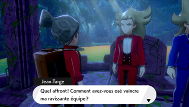 Ils reconnaissent Sonya et se moquent ouvertement du travail présenté dans son livre. Agacé par leur attitude alors que vous ne les connaissez même pas, Nabil leur demande qui ils sont. Ils se présentent à vous comme étant Jean-Fleuret et Jean-Targe, deux jumeaux représentant apparemment la plus célèbre famille de la noblesse à Galar et étant de sang royal.