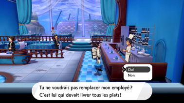 À Skifford, vous pouvez remplacer le livreur malade en parlant au cuisinier dans le restaurant le Brise-Lames et en allant effectuer ses livraisons de plats à sa place. Pour chacune d'entre elles, il vous donnera un indice quant au lieu de livraison (vu qu'il ne possède pas les adresses...) :