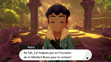 Elle a par ailleurs constaté que votre ami n'était pas au mieux de sa forme, ce qui pourrait expliquer sa défaite face au descendant des héros de la légende. Selon elle, c'est le fait que vous soyez devenu Maître et qu'il n'ait plus vraiment d'objectif qui fait qu'il ne donne plus tout ce qu'il a. Finalement, la jeune Professeure vous invite au labo de Brasswick pour mettre en place sa théorie et localiser ainsi les jumeaux. Vous pouvez directement accepter son invitation pour y arriver automatiquement, ou manifester votre inquiétude pour Nabil afin de la rejoindre un peu plus tard par vos propres moyens. Dans le second cas, vous vous retrouverez devant votre maison.