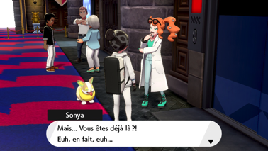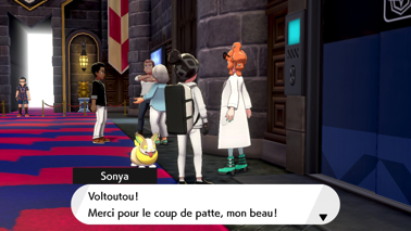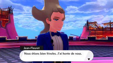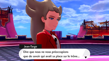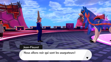 De retour à Kickenham après avoir sauvé les stades de Galar des Pokémon Dynamax, pénétrez dans le stade et parlez à Sonya devant l'ascenseur ! Elle réussit finalement à court-circuiter la serrure à l'aide de son Voltoutou. Descendez dans la Salle du réacteur pour finalement tomber sur Jean-Fleuret (Épée) ou Jean-Targe (Bouclier) avec ses quelques partisans. Étrangement, il leur demande de vous faire une ovation pour les exploits que vous venez d'accomplir... serait-il sarcastique ?