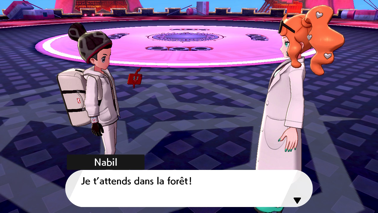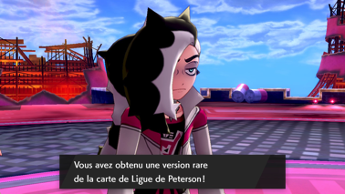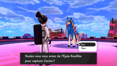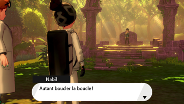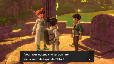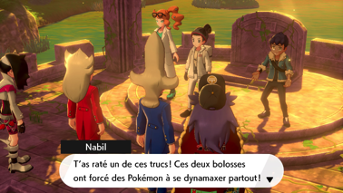 Acceptez et vous retrouvez alors Nabil avec Zacian (Bouclier) ou Zamazenta (Épée), qui parvient à le calmer. Sonya lui fait remarquer son imprudence, et votre rival avoue ne pas avoir été très sûr de son idée, mais au final, le Pokémon légendaire semble être décidé à l'accompagner ! Nabil le fait donc rentrer dans une Poké Ball, et possède donc lui aussi son propre Pokémon légendaire ! Il souhaite alors un combat final contre vous afin de mesurer la puissance de son nouvel allié.