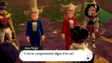 D'après les jumeaux, votre comportement est, à de nombreux égards, digne de celui d'un roi, ils ont donc décidé d'abdiquer pour leur titre de prétendants au trône afin que vous puissiez y prendre place. Ils vous laissent là, précisant qu'ils vont parcourir la région dans le but de demander pardon aux habitants de Galar. Peterson leur court après, toujours pas convaincu de leur honnêteté.