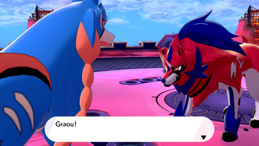 Le Pokémon légendaire restant (Zacian sur Épée ou Zamazenta sur Bouclier) qui est venu à votre secours est tout de même très remonté contre les jumeaux, et s'approche de celui qui a déjà été mis à terre. Son frère se met en travers de sa route, le suppliant de le laisser traquille, puis vous interpellez cet imposant Pokémon, qui comprend à votre regard qu'ils ne valent pas la peine qu'on s'en prenne davantage à eux. Le loup se détourne de vous, s'éloigne, mais ne part pas. Au contraire, il vous regarde de nouveau et se met en attente, comme s'il voulait que vous le défiez à son tour.