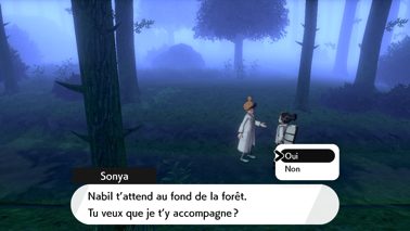 En arrivant dans la forêt, Sonya vous propose de vous accompagner directement à l'autel où se trouve Nabil (vous pouvez refuser si vous souhaitez vous y rendre par vos propres moyens).