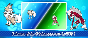 ![]() Faisons plein d'échanges sur la GTS ! | Du 31/01/17 au 14/02/17 | Échanger 1 million de Pokémon via la GTS | Succès : 2000 Festipièces Échec : 200 Festipièces | Succès : 4000 Festipièces Échec : 400 Festipièces Score individuel ≥ 5 : 5 Super Bonbons Score total ≥ 2 millions : 1 Copain Ball | Succès (4 107 702) |