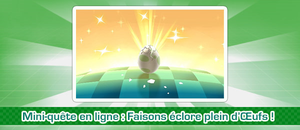 ![]() Faisons éclore plein d’Œufs ! | Du 28/03/17 au 11/04/17 | Faire éclore 200 000 Œufs | Succès : 2000 Festipièces Échec : 200 Festipièces | Succès : 4000 Festipièces Échec : 400 Festipièces Score individuel ≥ 3 : 5 Super Bonbons Score total ≥ 400 000 : 1 Love Ball | Succès (14 503 078) |