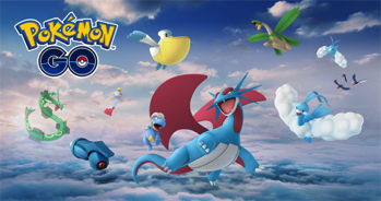![]() | Arrivée de certains Pokémon de Hoenn. Certains Pokémon de la 3G (type Vol/Dragon) ont pu être obtenus via l'évènement spécial Vent. | 8 février 2018 |