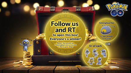 Pour célébrer l'arrivée de la compatibilité de Pokémon GO avec Pokémon Écarlate et Violet le 27 février 2023, un des comptes officiels du jeu vous proposait de les follow + RT un de leur tweet avec le hashtag #GOGimmighoul pour recevoir via le code promotionnel obtenu : soit 1 Bonnet Mordudor, soit 1 code offrant 25 Stickers Mordudor !