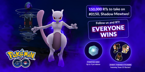 Pour célébrer l'arrivée des Raids Obscurs le 22 mai 2023, un des comptes officiels du jeu vous proposait de RT un de leur tweet avec le hashtag #ShadowRaids ! Si 150 000 RT été atteints, chaque participant obtenait alors via un code promotionnel : 4 Gemmes Purifiées et les Stickers des 3 Leaders Team GO Rocket !