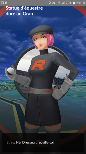 Une fois que vous avez repéré le PokéStop en question, vous n'avez que 30 minutes avant que le Sbire le possédant devienne indisponible ! Tournez donc le PokéStop comme un PokéStop normal (ou quittez-le sans le tourner), et là... surprise, un Sbire (masculin ou féminin) apparaît :
