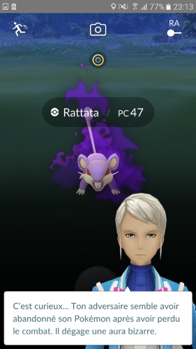 Comme via les PokéStops, le Pokémon Obscur que vous pouvez sauver (capturer) apparaît une fois l'occupant vaincu.