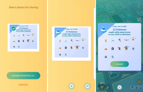 Si vous attrapez des Pokémon pendant les 15 minutes d'activation de l'Encens d’aventure quotidienne, vous recevrez un récapitulatif avec tous les Pokémon attrapés. Vous pouvez facilement le partager sur les réseaux sociaux !