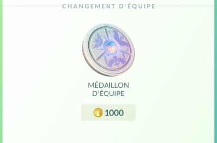 Une fois par an, il vous est également possible de switcher d'équipe. Pour cela, il vous suffit d'acheter dans la boutique du jeu le Médaillon d'équipe (pour 1000 Poképièces) vous permettant d'aller dans une autre équipe. Cependant, il ne vous est possible de faire le changement qu'une seule fois par an, donc réfléchissez bien, car vous devrez attendre un an pour que le Médaillon réapparaisse dans la boutique, vous permettant ainsi de revenir dans votre équipe initiale ou à nouveau de changer d'équipe !