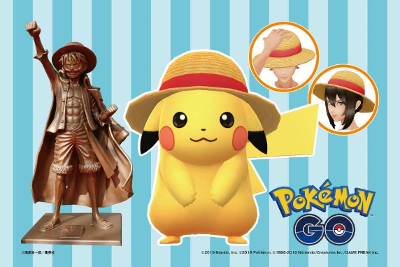 Pour aider à la reconstruction de Kumamoto (après les événements de 2016), mais aussi pour fêter les 22 ans de One Piece et les 3 ans de Pokémon GO, Pikachu à chapeau de paille pouvait être rencontré durant cette période (ainsi que dans sa forme chromatique) ! Il ne pouvait cependant pas évoluer et une statue à l'effigie de l'événement avait été placée (elle faisait office de PokéStop).Pokémon spécifiques