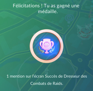 - Disponibles depuis le 25 juin 2021, les accomplissements de Dresseurs sont conçus pour célébrer les Dresseurs de tous niveaux après leur participation à un Raid. Par exemple, à la fin d'un Raid, celles et ceux ayant infligé le plus de dégâts ou utilisé un Pokémon méga-évolué seront présentés comme des acteurs clés du combat.